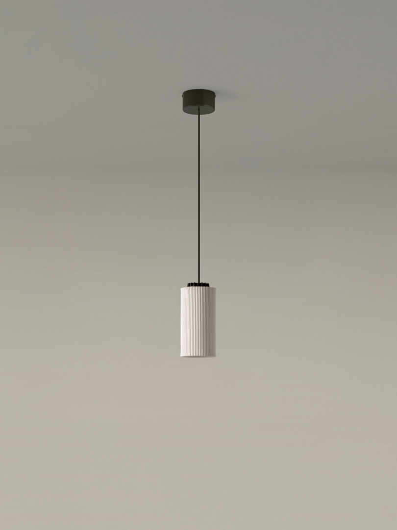 Cirio simple är en takpendel som innehåller en LED-ljuskälla, hänger från en enkel rosett. Tre olika nyanser sträcker sig från det utformade porslinet, en genomskinligt opalglas för starkare och mer ekonomisk belysning och den ogenomskinligt i mässing för spotlighting.
